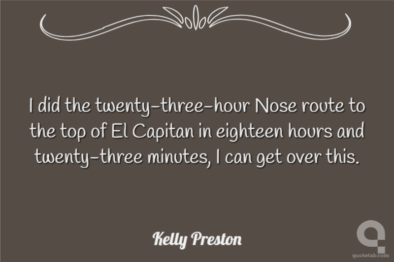 I did the twenty-three-hour Nose route to the top of El Capitan in eighteen hours and twenty-three minutes, I can get over this.
