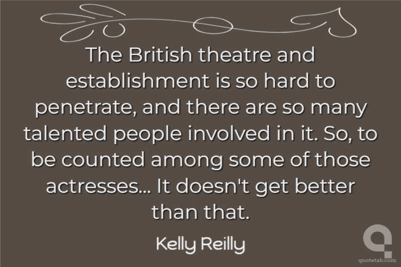 The British theatre and establishment is so hard to penetrate, and there are so many talented people involved in it. So, to be counted among some of those actresses... It doesn't get better than that.