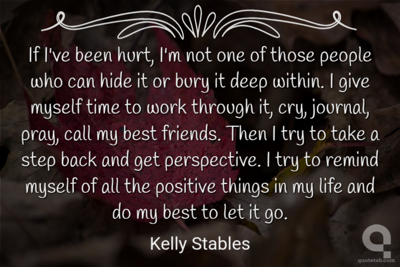 If I've been hurt, I'm not one of those people who can hide it or bury it deep within. I give myself time to work through it, cry, journal, pray, call my best friends. Then I try to take a step back and get perspective. I try to remind myself of all the positive things in my life and do my best to let it go.