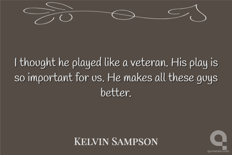 I thought he played like a veteran. His play is so important for us. He makes all these guys better.