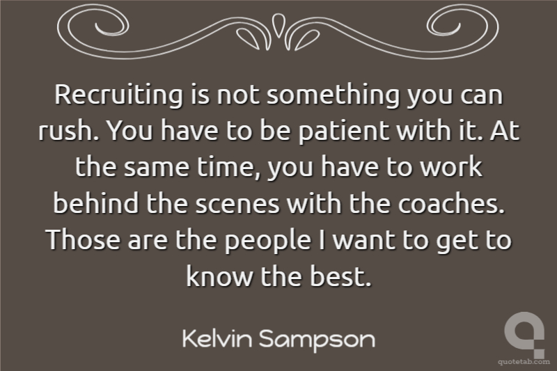 Recruiting is not something you can rush. You have to be patient with it. At the same time, you have to work behind the scenes with the coaches. Those are the people I want to get to know the best.