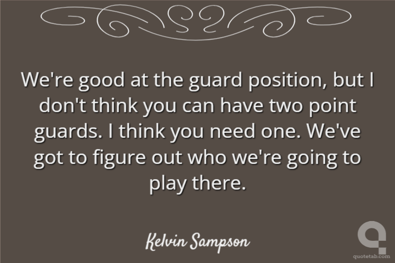 We're good at the guard position, but I don't think you can have two point guards. I think you need one. We've got to figure out who we're going to play there.