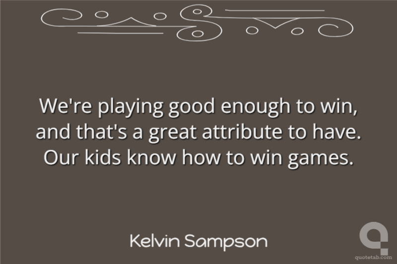 We're playing good enough to win, and that's a great attribute to have. Our kids know how to win games.