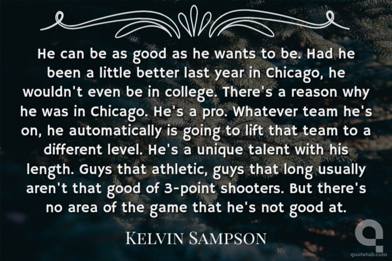 He can be as good as he wants to be. Had he been a little better last year in Chicago, he wouldn't even be in college. There's a reason why he was in Chicago. He's a pro. Whatever team he's on, he automatically is going to lift that team to a different level. He's a unique talent with his length. Guys that athletic, guys that long usually aren't that good of 3-point shooters. But there's no area of the game that he's not good at.