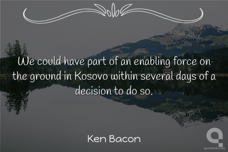 We could have part of an enabling force on the ground in Kosovo within several days of a decision to do so.