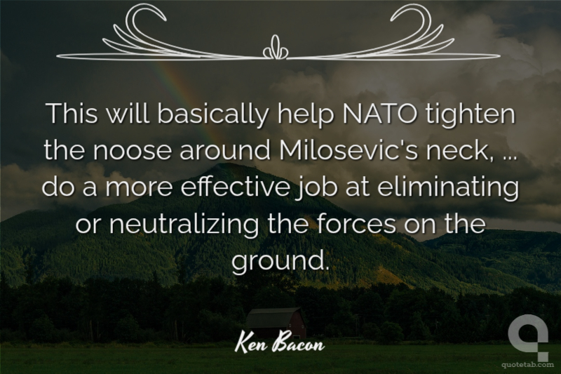 This will basically help NATO tighten the noose around Milosevic's neck, ... do a more effective job at eliminating or neutralizing the forces on the ground.