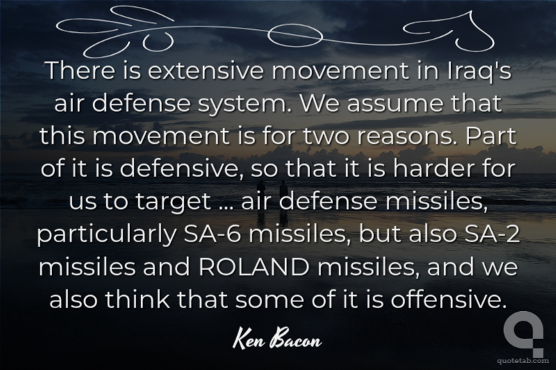There is extensive movement in Iraq's air defense system. We assume that this movement is for two reasons. Part of it is defensive, so that it is harder for us to target ... air defense missiles, particularly SA-6 missiles, but also SA-2 missiles and ROLAND missiles, and we also think that some of it is offensive.