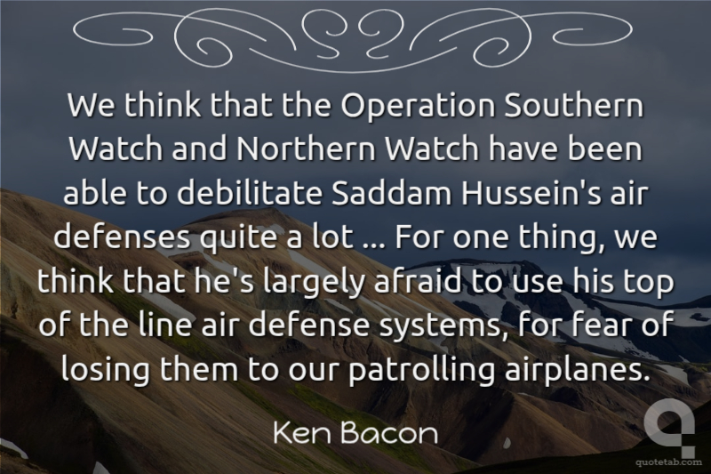 We think that the Operation Southern Watch and Northern Watch have been able to debilitate Saddam Hussein's air defenses quite a lot ... For one thing, we think that he's largely afraid to use his top of the line air defense systems, for fear of losing them to our patrolling airplanes.