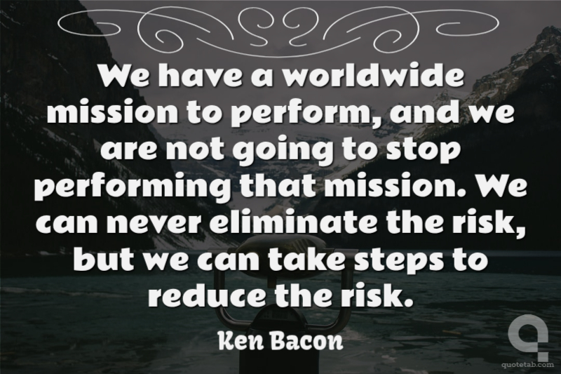 We have a worldwide mission to perform, and we are not going to stop performing that mission. We can never eliminate the risk, but we can take steps to reduce the risk.