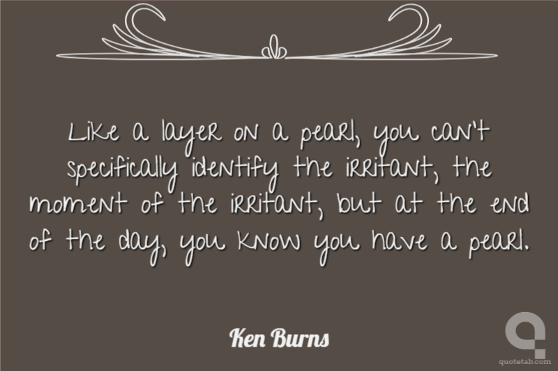 Like a layer on a pearl, you can't specifically identify the irritant, the moment of the irritant, but at the end of the day, you know you have a pearl.