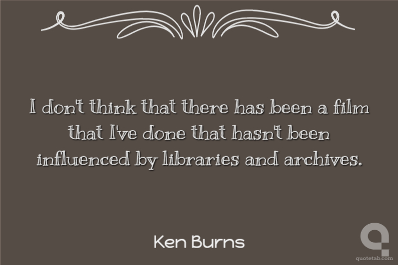 I don't think that there has been a film that I've done that hasn't been influenced by libraries and archives.