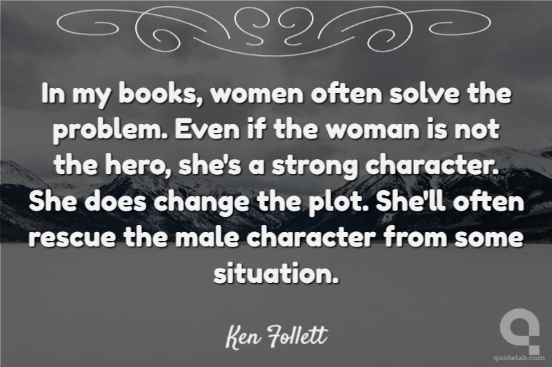 In my books, women often solve the problem. Even if the woman is not the hero, she's a strong character. She does change the plot. She'll often rescue the male character from some situation.
