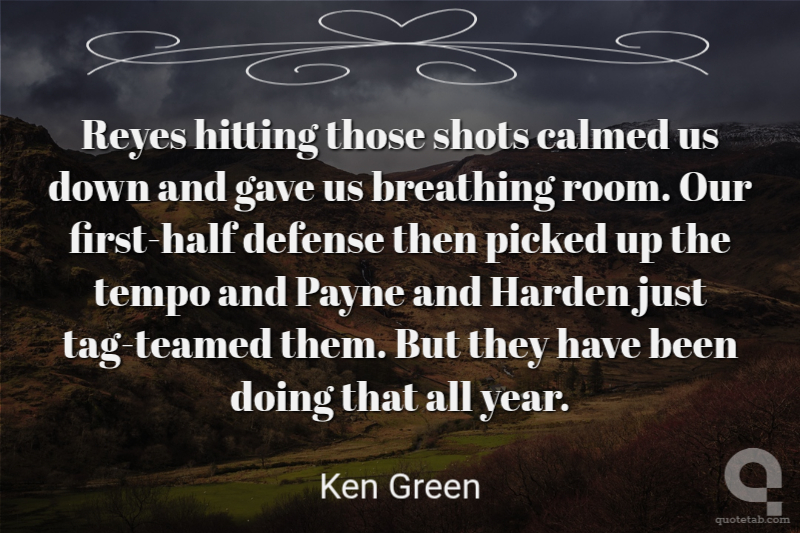 Reyes hitting those shots calmed us down and gave us breathing room. Our first-half defense then picked up the tempo and Payne and Harden just tag-teamed them. But they have been doing that all year.