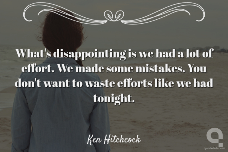 What's disappointing is we had a lot of effort. We made some mistakes. You don't want to waste efforts like we had tonight.