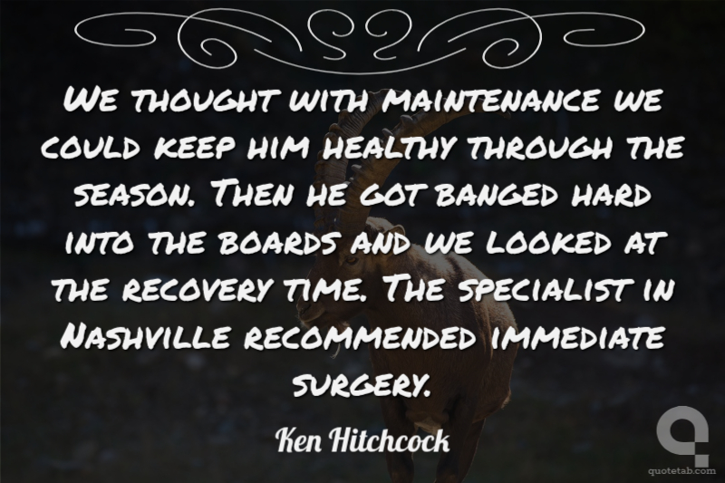 We thought with maintenance we could keep him healthy through the season. Then he got banged hard into the boards and we looked at the recovery time. The specialist in Nashville recommended immediate surgery.