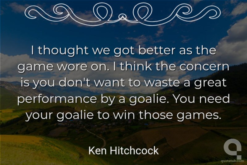 I thought we got better as the game wore on. I think the concern is you don't want to waste a great performance by a goalie. You need your goalie to win those games.