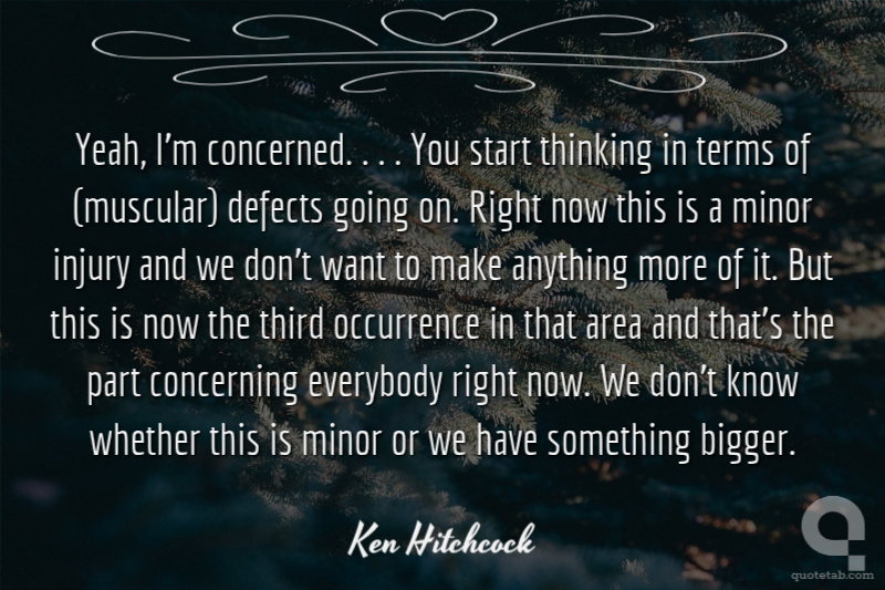 Yeah, I'm concerned. . . . You start thinking in terms of (muscular) defects going on. Right now this is a minor injury and we don't want to make anything more of it. But this is now the third occurrence in that area and that's the part concerning everybody right now. We don't know whether this is minor or we have something bigger.