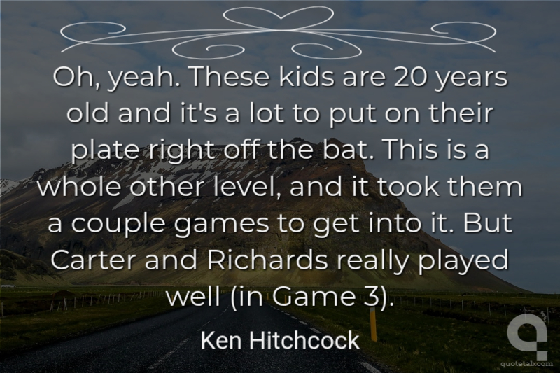 Oh, yeah. These kids are 20 years old and it's a lot to put on their plate right off the bat. This is a whole other level, and it took them a couple games to get into it. But Carter and Richards really played well (in Game 3).