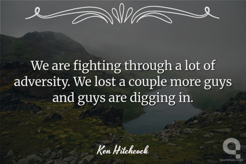 We are fighting through a lot of adversity. We lost a couple more guys and guys are digging in.