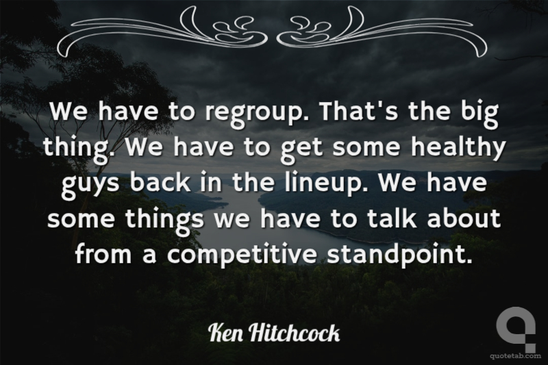 We have to regroup. That's the big thing. We have to get some healthy guys back in the lineup. We have some things we have to talk about from a competitive standpoint.