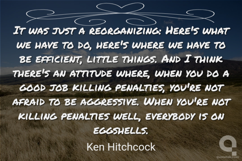 It was just a reorganizing: Here's what we have to do, here's where we have to be efficient, little things. And I think there's an attitude where, when you do a good job killing penalties, you're not afraid to be aggressive. When you're not killing penalties well, everybody is on eggshells.