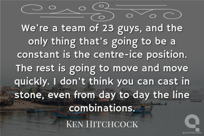 We're a team of 23 guys, and the only thing that's going to be a constant is the centre-ice position. The rest is going to move and move quickly. I don't think you can cast in stone, even from day to day the line combinations.