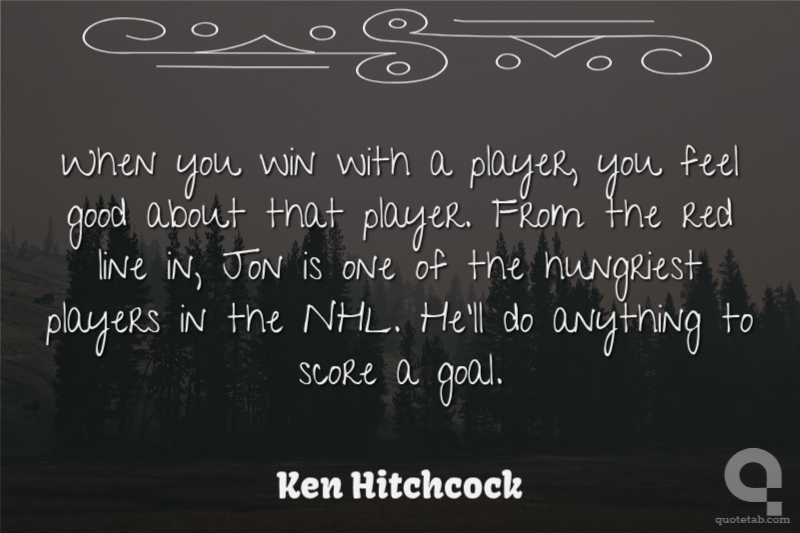 When you win with a player, you feel good about that player. From the red line in, Jon is one of the hungriest players in the NHL. He'll do anything to score a goal.