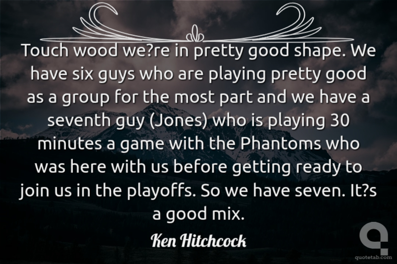 Touch wood we?re in pretty good shape. We have six guys who are playing pretty good as a group for the most part and we have a seventh guy (Jones) who is playing 30 minutes a game with the Phantoms who was here with us before getting ready to join us in the playoffs. So we have seven. It?s a good mix.
