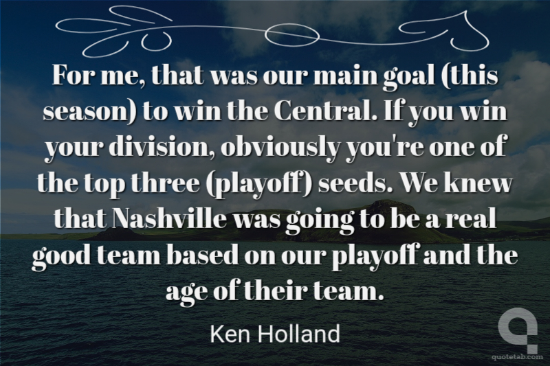 For me, that was our main goal (this season) to win the Central. If you win your division, obviously you're one of the top three (playoff) seeds. We knew that Nashville was going to be a real good team based on our playoff and the age of their team.