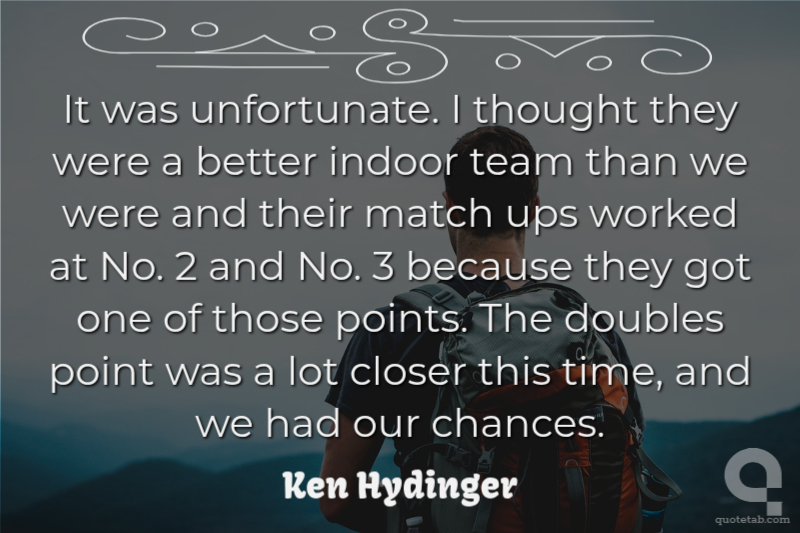 It was unfortunate. I thought they were a better indoor team than we were and their match ups worked at No. 2 and No. 3 because they got one of those points. The doubles point was a lot closer this time, and we had our chances.