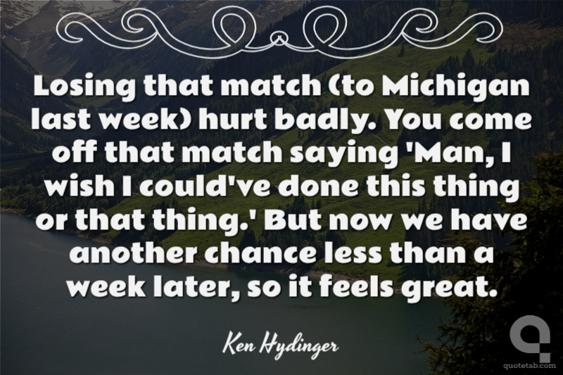Losing that match (to Michigan last week) hurt badly. You come off that match saying 'Man, I wish I could've done this thing or that thing.' But now we have another chance less than a week later, so it feels great.
