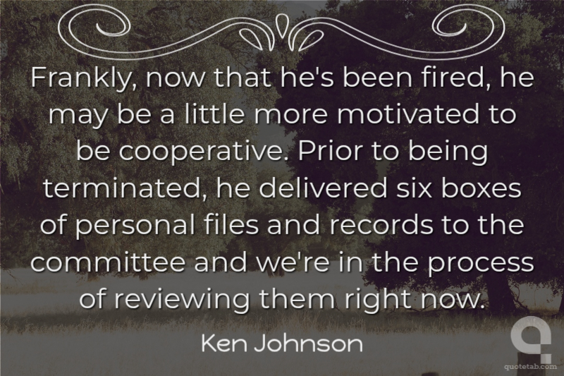 Frankly, now that he's been fired, he may be a little more motivated to be cooperative. Prior to being terminated, he delivered six boxes of personal files and records to the committee and we're in the process of reviewing them right now.
