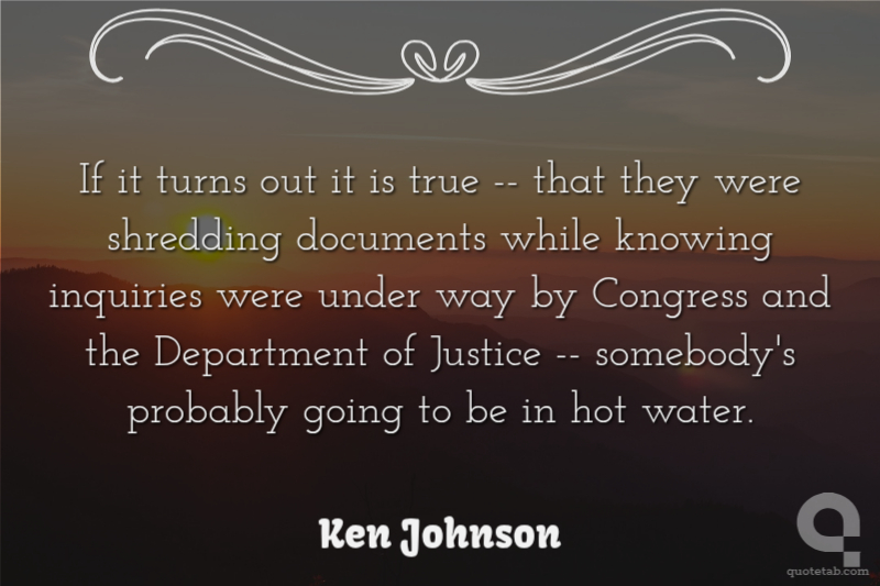 If it turns out it is true -- that they were shredding documents while knowing inquiries were under way by Congress and the Department of Justice -- somebody's probably going to be in hot water.