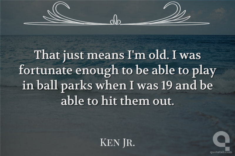 That just means I'm old. I was fortunate enough to be able to play in ball parks when I was 19 and be able to hit them out.