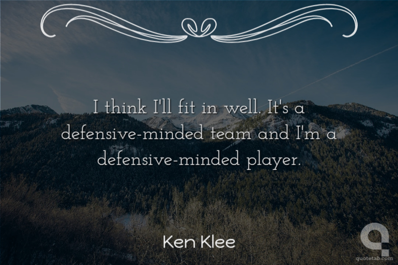 I think I'll fit in well. It's a defensive-minded team and I'm a defensive-minded player.