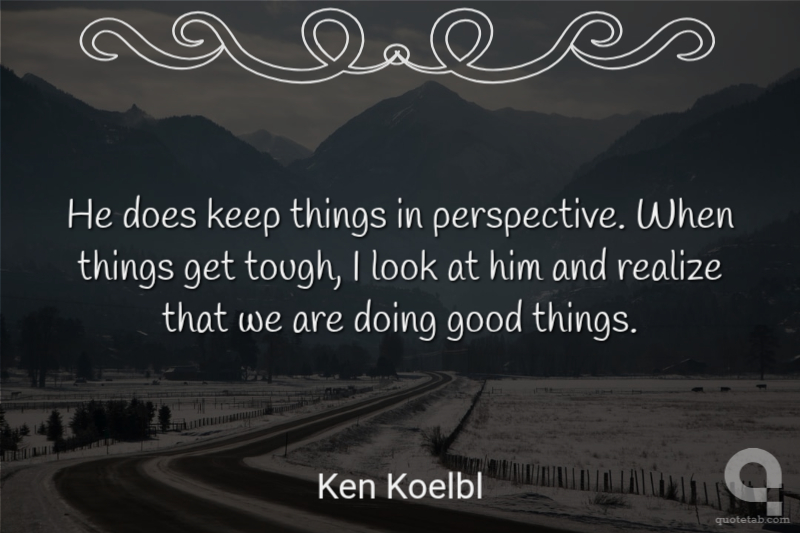He does keep things in perspective. When things get tough, I look at him and realize that we are doing good things.