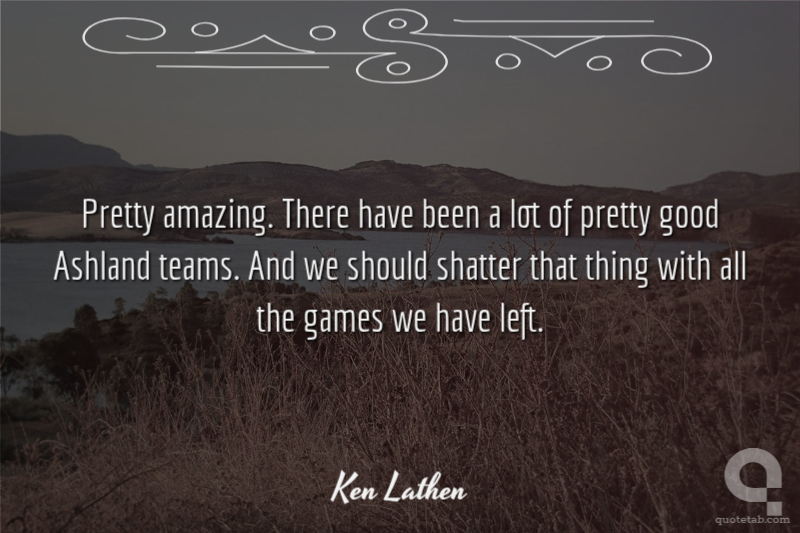 Pretty amazing. There have been a lot of pretty good Ashland teams. And we should shatter that thing with all the games we have left.