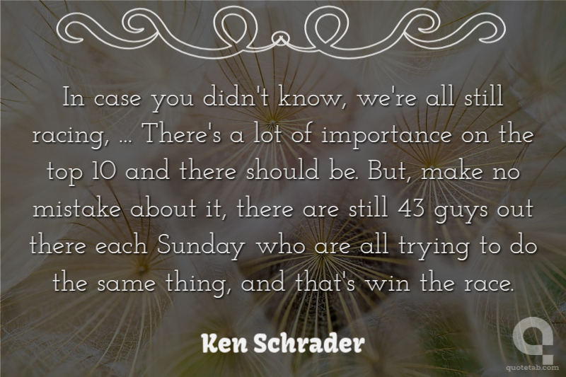 In case you didn't know, we're all still racing, ... There's a lot of importance on the top 10 and there should be. But, make no mistake about it, there are still 43 guys out there each Sunday who are all trying to do the same thing, and that's win the race.