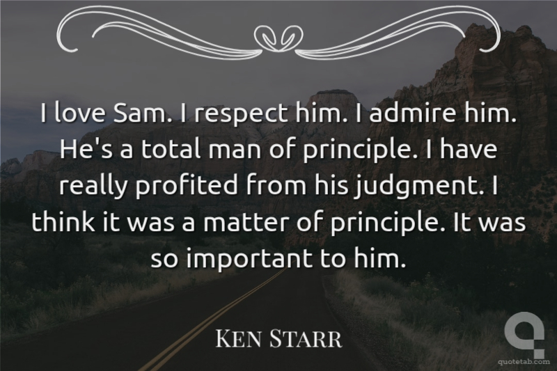 I love Sam. I respect him. I admire him. He's a total man of principle. I have really profited from his judgment. I think it was a matter of principle. It was so important to him.