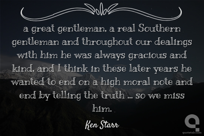 a great gentleman, a real Southern gentleman and throughout our dealings with him he was always gracious and kind, and I think in these later years he wanted to end on a high moral note and end by telling the truth ... so we miss him.