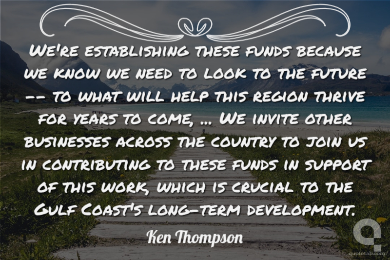 We're establishing these funds because we know we need to look to the future -- to what will help this region thrive for years to come, ... We invite other businesses across the country to join us in contributing to these funds in support of this work, which is crucial to the Gulf Coast's long-term development.