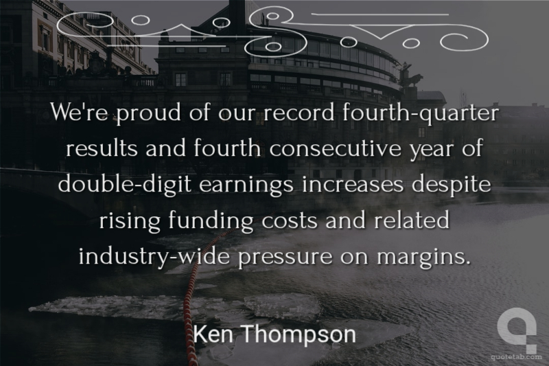 We're proud of our record fourth-quarter results and fourth consecutive year of double-digit earnings increases despite rising funding costs and related industry-wide pressure on margins.