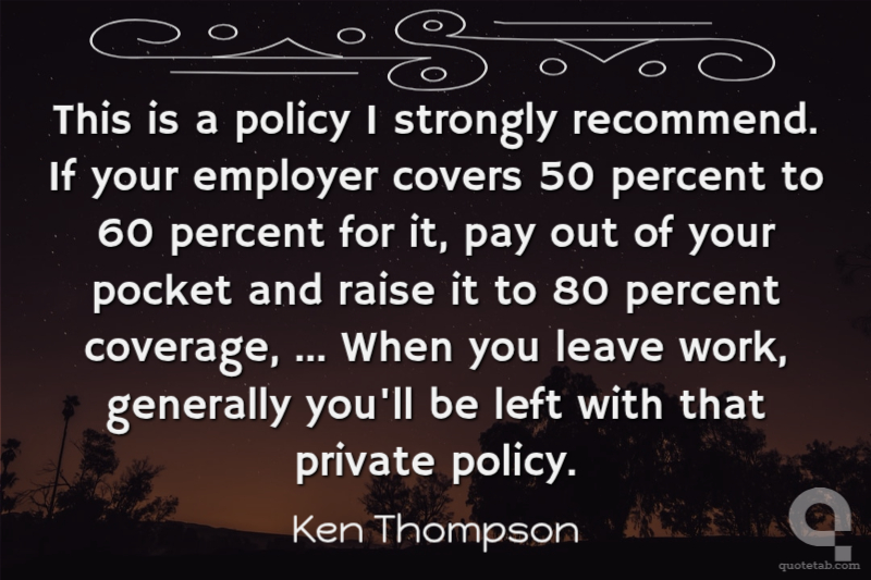 This is a policy I strongly recommend. If your employer covers 50 percent to 60 percent for it, pay out of your pocket and raise it to 80 percent coverage, ... When you leave work, generally you'll be left with that private policy.