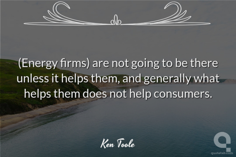 (Energy firms) are not going to be there unless it helps them, and generally what helps them does not help consumers.