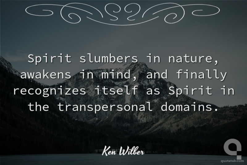 Spirit slumbers in nature, awakens in mind, and finally recognizes itself as Spirit in the transpersonal domains.