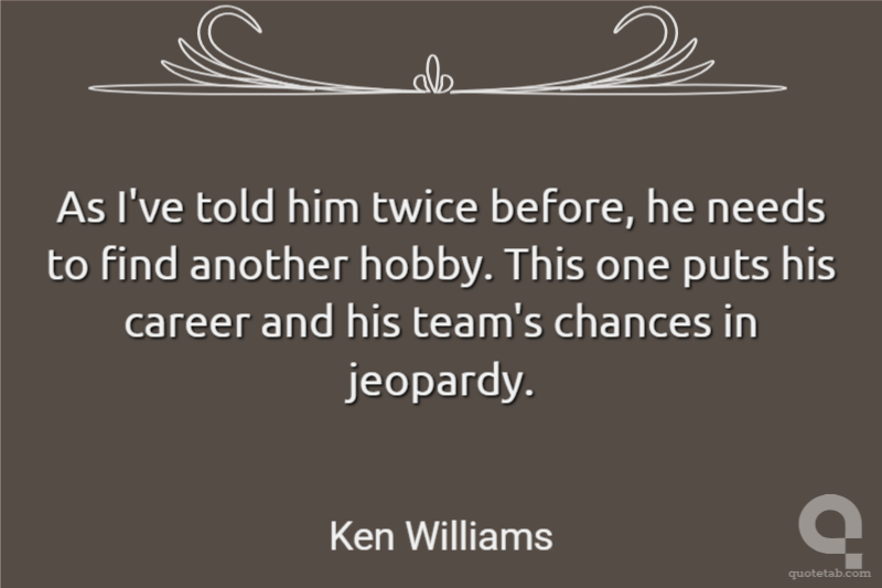 As I've told him twice before, he needs to find another hobby. This one puts his career and his team's chances in jeopardy.