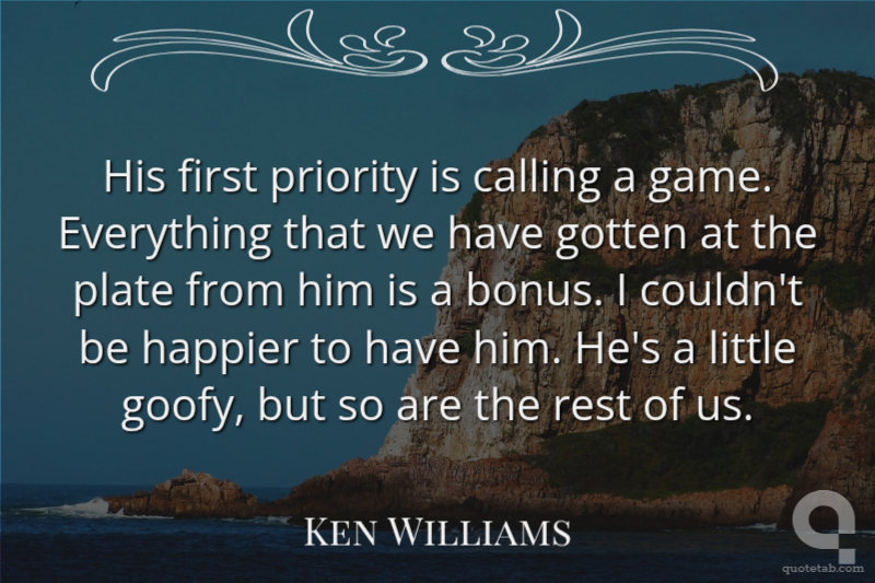 His first priority is calling a game. Everything that we have gotten at the plate from him is a bonus. I couldn't be happier to have him. He's a little goofy, but so are the rest of us.