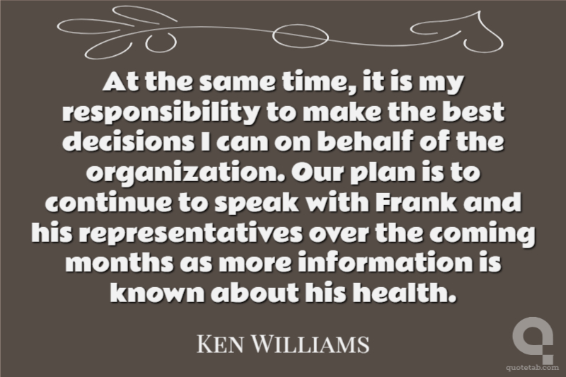 At the same time, it is my responsibility to make the best decisions I can on behalf of the organization. Our plan is to continue to speak with Frank and his representatives over the coming months as more information is known about his health.