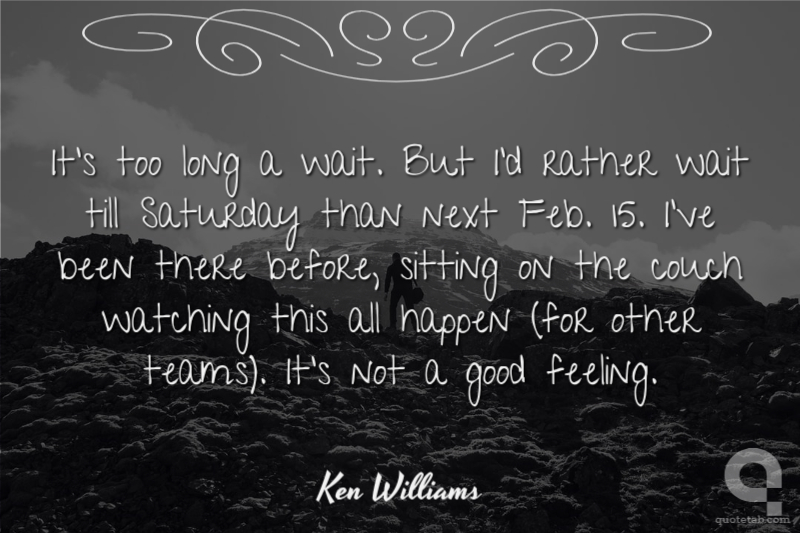 It's too long a wait. But I'd rather wait till Saturday than next Feb. 15. I've been there before, sitting on the couch watching this all happen (for other teams). It's not a good feeling.