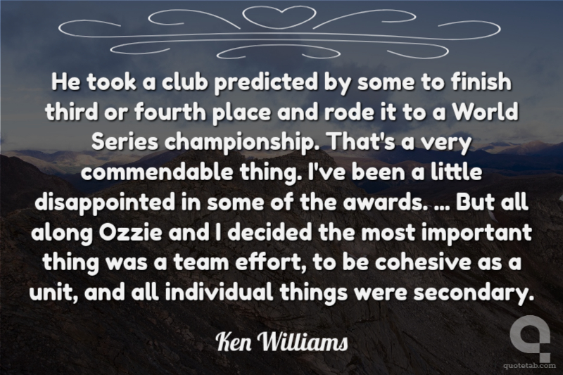 He took a club predicted by some to finish third or fourth place and rode it to a World Series championship. That's a very commendable thing. I've been a little disappointed in some of the awards. ... But all along Ozzie and I decided the most important thing was a team effort, to be cohesive as a unit, and all individual things were secondary.
